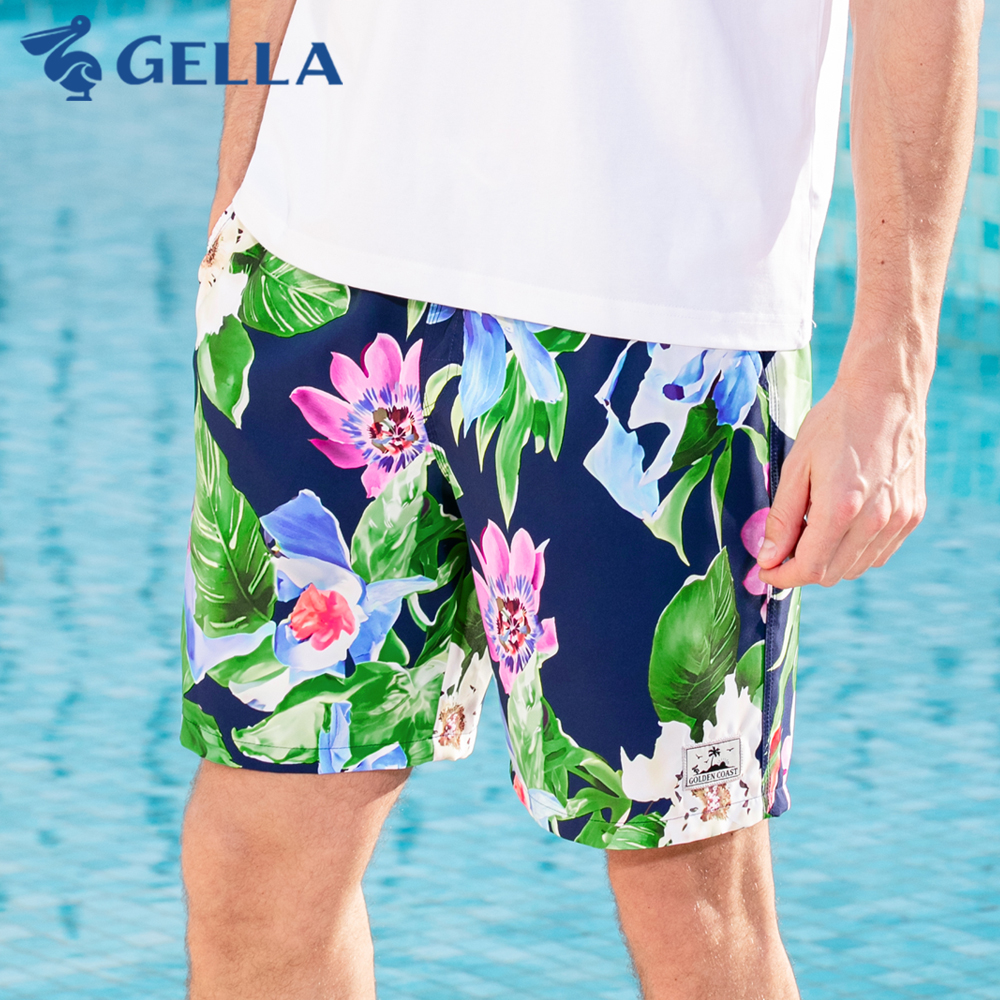 衩度假风海边泳裤 Gella新品 外穿宽松花裤 男可下水速干短裤 沙滩裤
