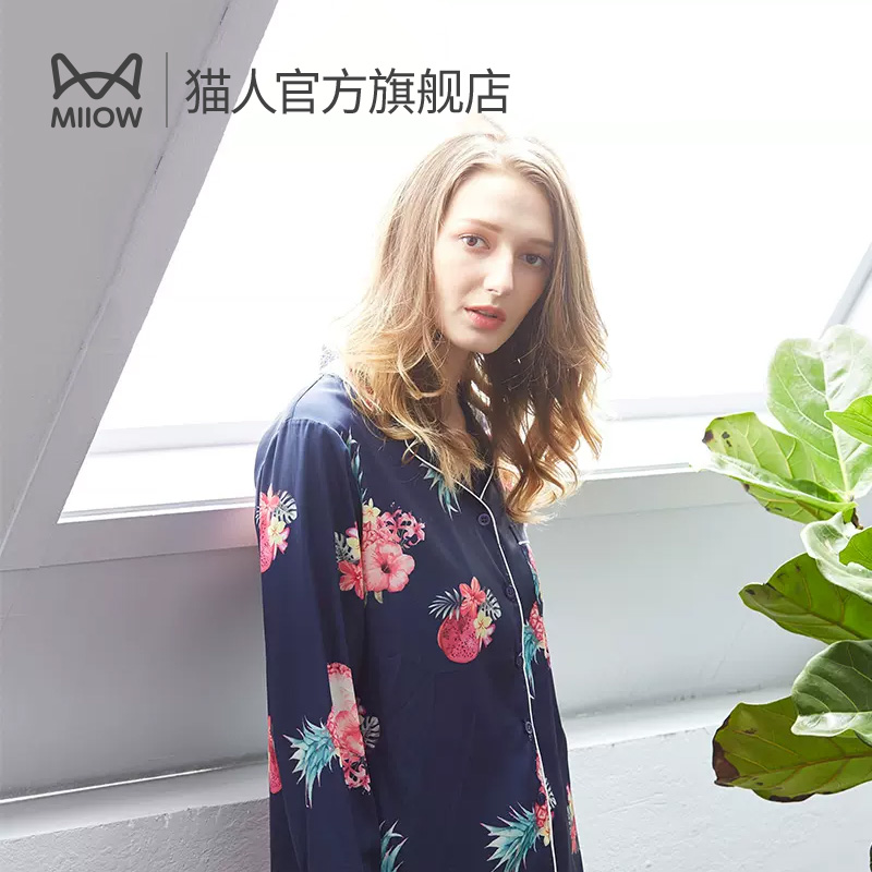 长裤 猫人女士睡衣春秋长袖 印花学生可爱休闲可外穿家居服 折