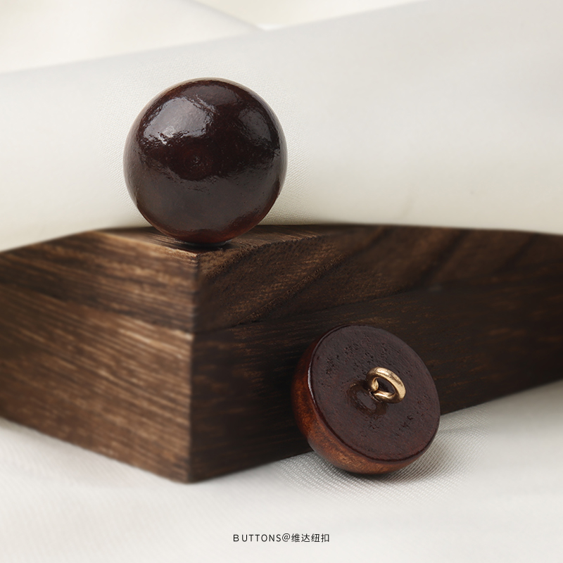 扣子旗袍国风钮扣 深咖蘑菇木头高脚纽扣儿童衬衫 维达 菌润圆饰