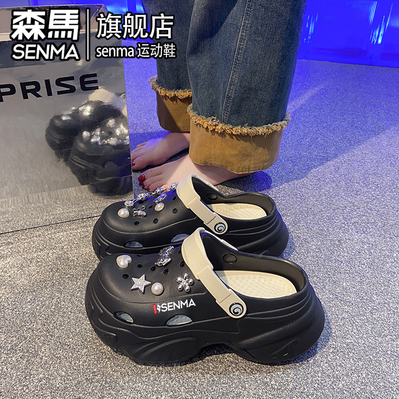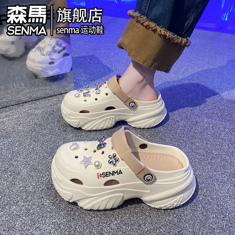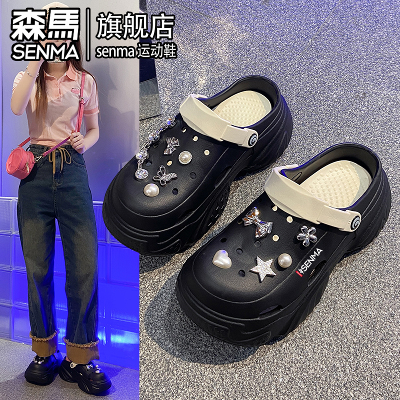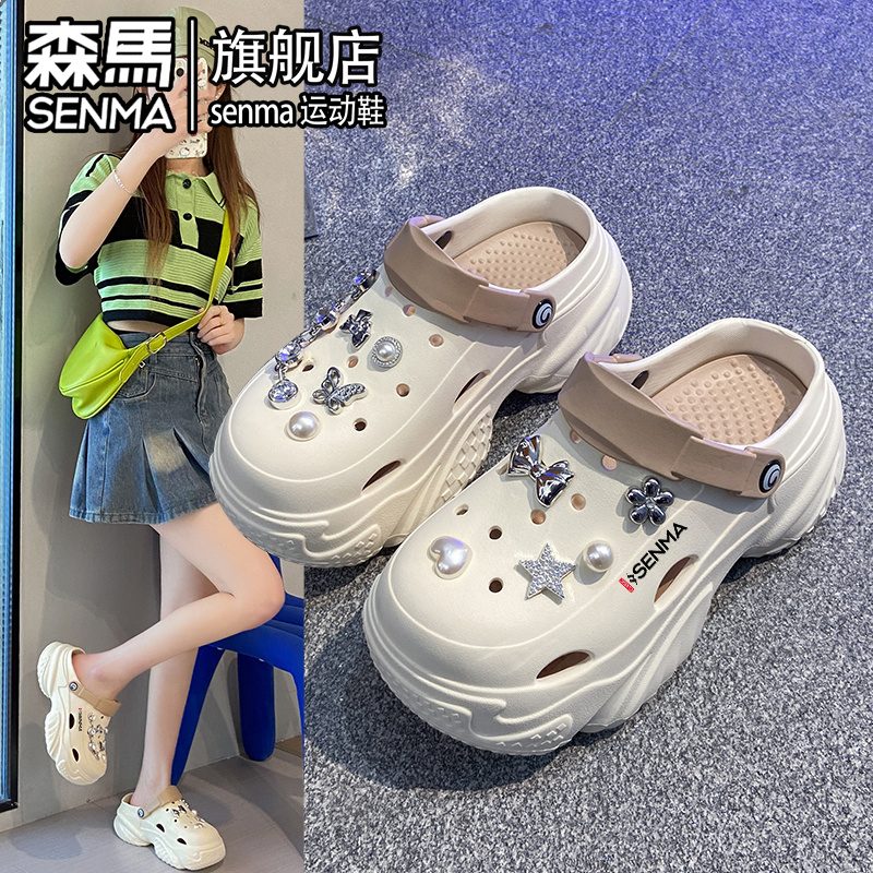 厚底增高踩屎感沙滩凉鞋 森马洞洞鞋 外穿防滑防臭包头拖鞋 夏季 女款