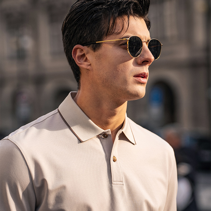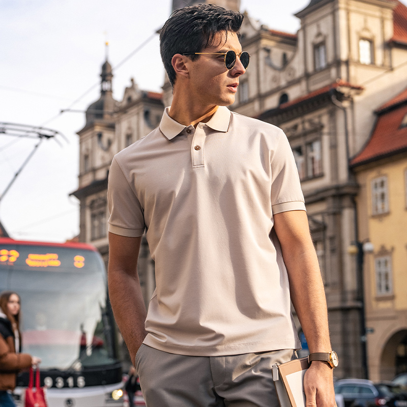 MrBu布先生格纹纹理扁机领短袖 商务气质t恤男AT16030 2025春夏新款