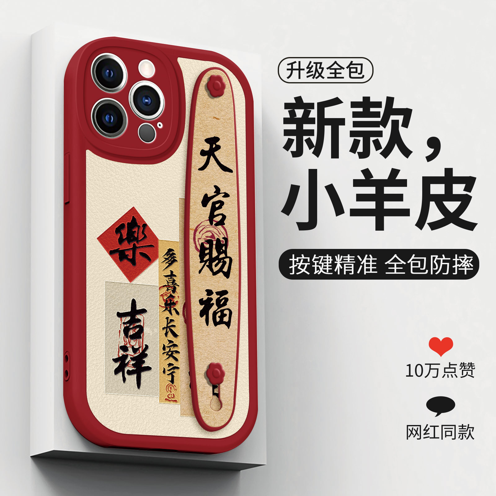 适用苹果16Pro手机壳15ProMax书法文字iPhone13喜庆12腕带11支架14plus保护XS防摔XR国潮7软8浮雕SE硅胶X女款