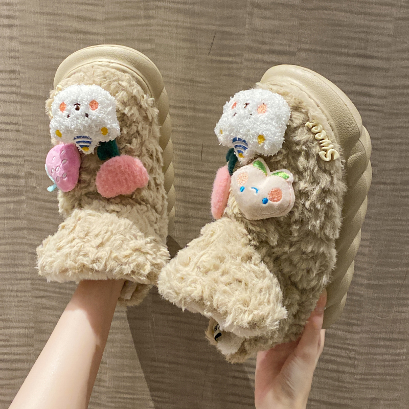 可爱玩偶雪地靴女冬季 网红外穿加厚毛绒厚底防滑室内家居保暖棉鞋