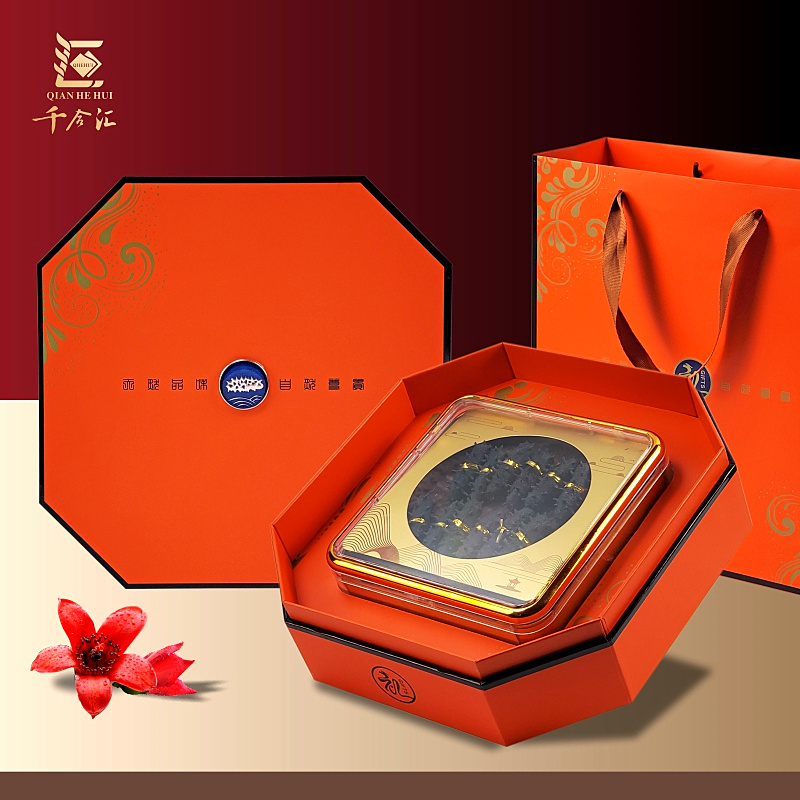 海参鲍鱼礼盒空盒高档橙色八角形外盒一斤装 盒 亚克力内盒干货包装