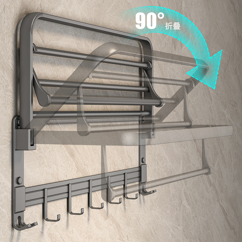 枪灰浴巾架卫生间可折叠毛巾架浴室免打孔壁挂式 太空铝置物架卫浴