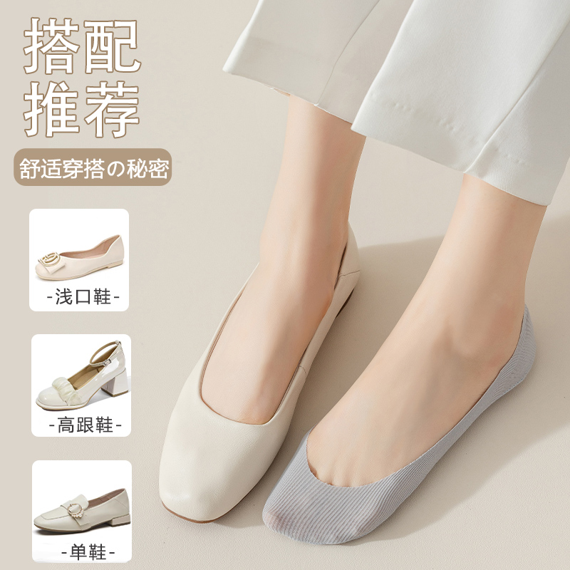 短隐形袜防滑不掉跟浅口袜子 棉底高跟鞋 袜子女士冰丝船袜夏季 薄款