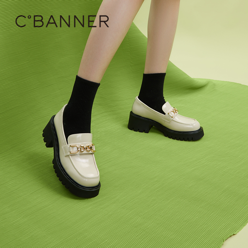 秋季 真皮豆豆鞋 新款 增高小皮鞋 英伦风 厚底乐福鞋 千百度女鞋