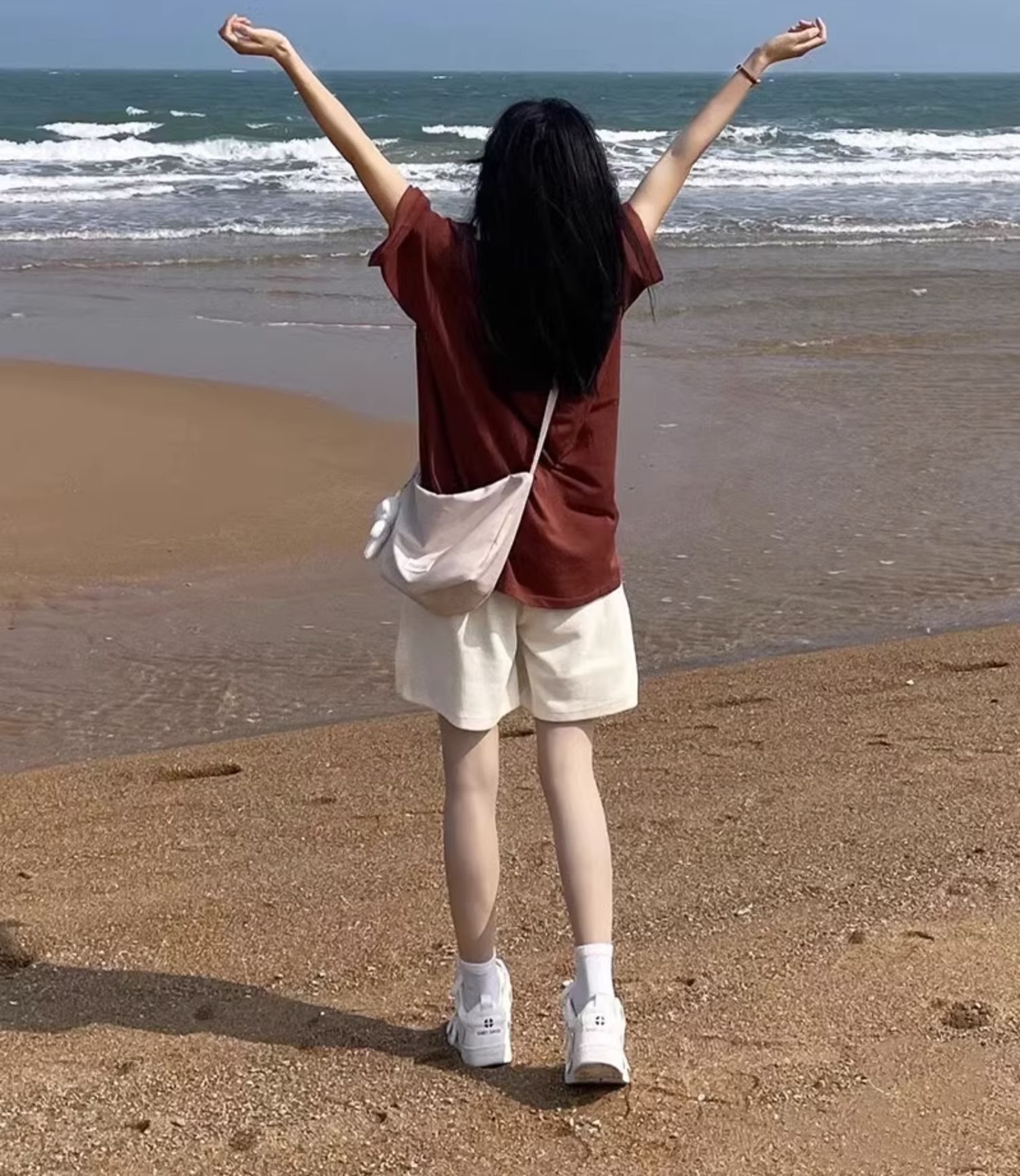 宽松显瘦直筒阔脚休闲五分裤 女夏ins潮学生薄款 高腰运动短裤 美式