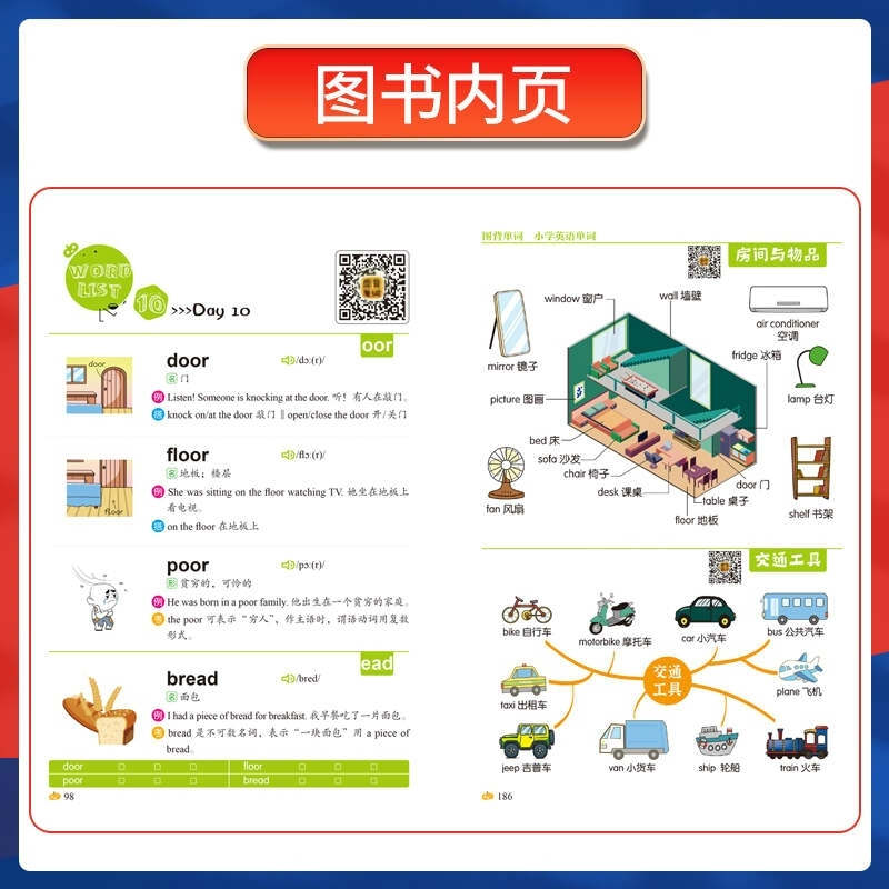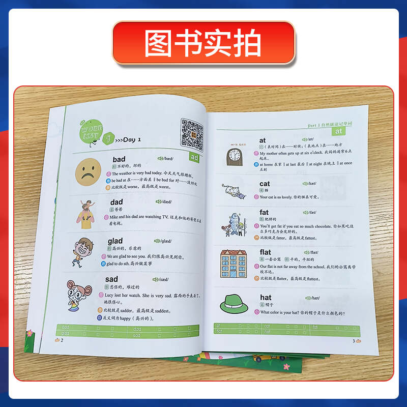 小学英语单词自然拼读法词汇总表记背听读词汇卡片英语入门自学零基础三四五六年级课本同步音标单词一本通情景图解法同步阅读
