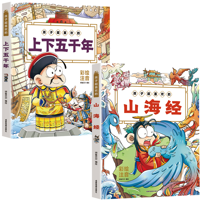 全2册 上下五千年 彩绘注音版 少儿小学一二三456年级国学启蒙课外读物6 12岁彩图漫画畅销书籍拼音图书 孩子超喜欢 山海经