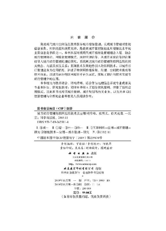 城市运行管理物联网监测技术及应用书籍 正版 书