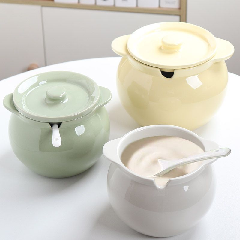 陶瓷装 猪油罐坛子双耳带盖家用耐高温荤油罐厨房陶瓷储油罐油泼罐