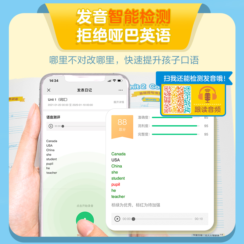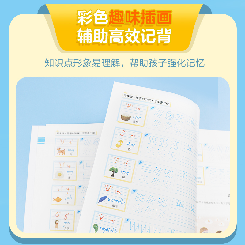 配听写默写本 华夏万卷 于佩安手写体规范斜体英文字帖 英文书法练字本 三年级下册英语同步练字帖小学生写字课人教PEP版