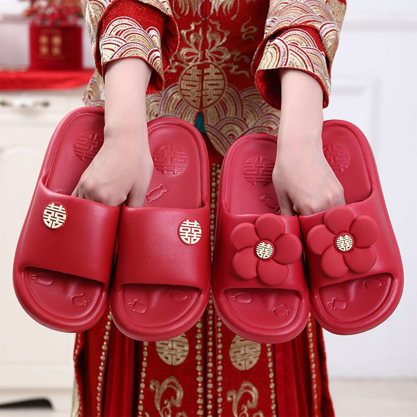 结婚拖鞋 喜庆红色新娘陪嫁用品浴室防滑凉拖婚鞋 一对夏季 新婚凉鞋