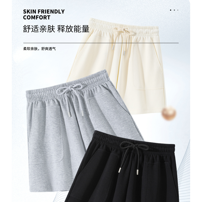 百搭宽松A字裤 班尼路杏色运动短裤 透气休闲女裤 新款 子女士Q 女夏季