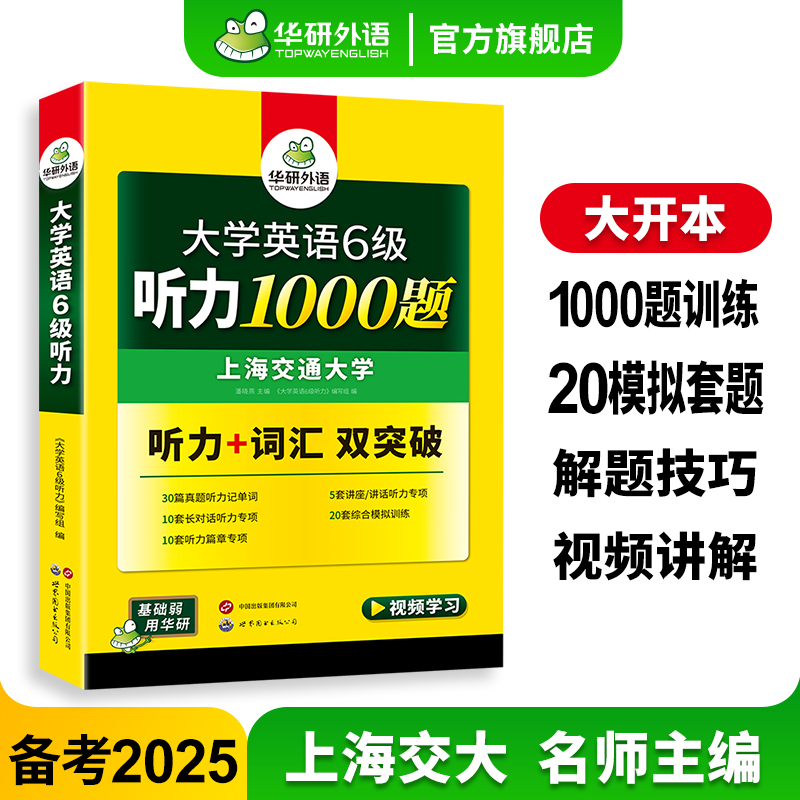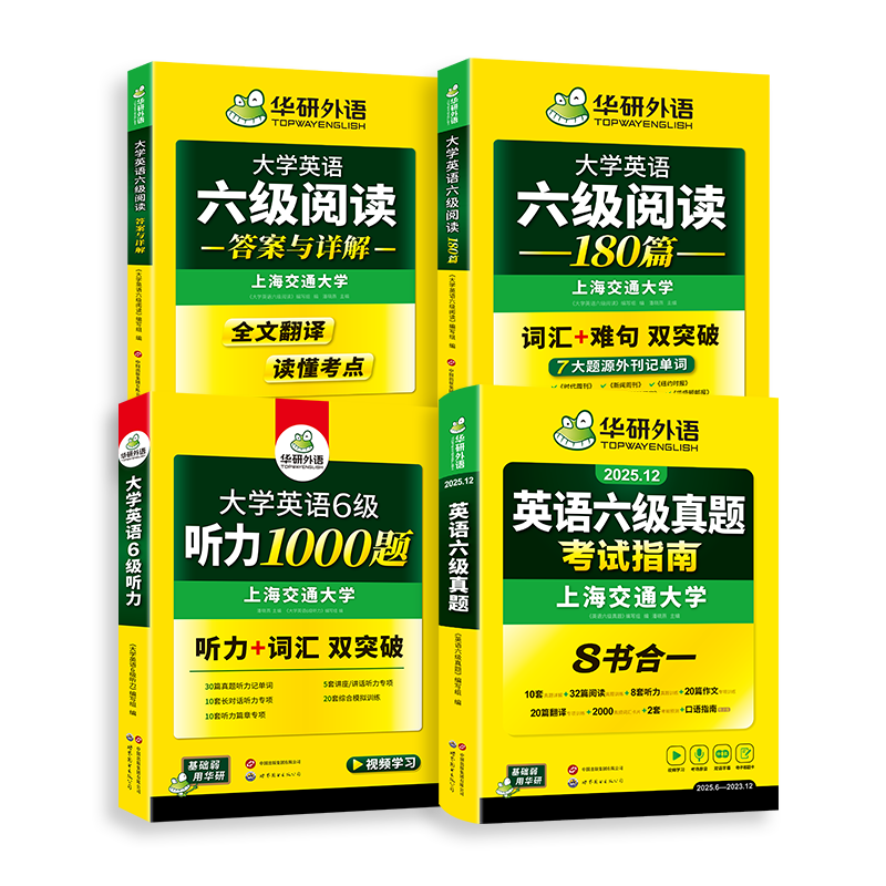 华研外语英语六级真题考试指南听力阅读180篇备考2025年12月大学六级英语词汇阅读听力翻译写作模拟专项训练cet6级 官方旗舰店