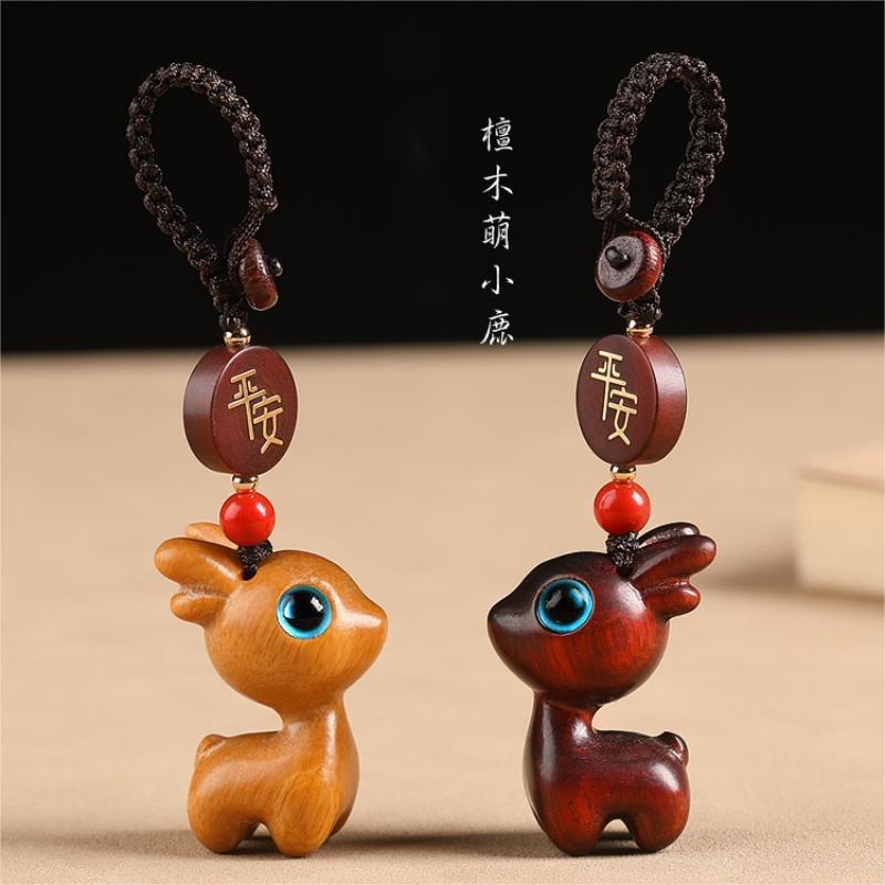一路平安檀木小鹿钥匙扣汽车挂件精致可爱男女情侣手机链挂饰吊坠