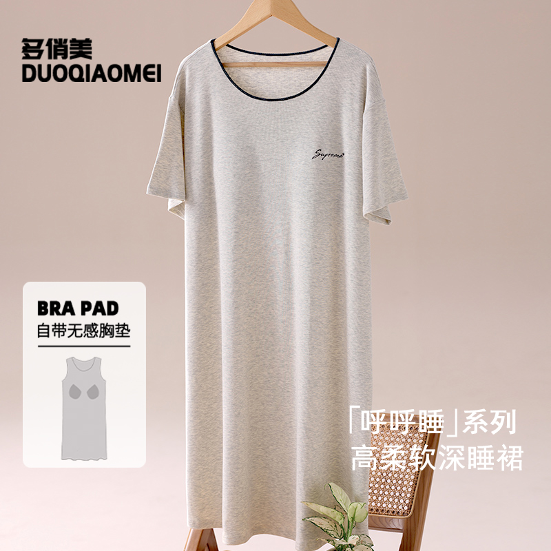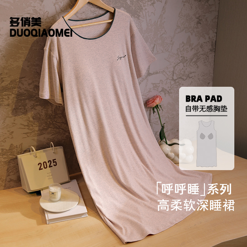 薄款 新款 宽松可外穿家居服 莫代尔2025夏季 带胸垫睡裙女士短袖