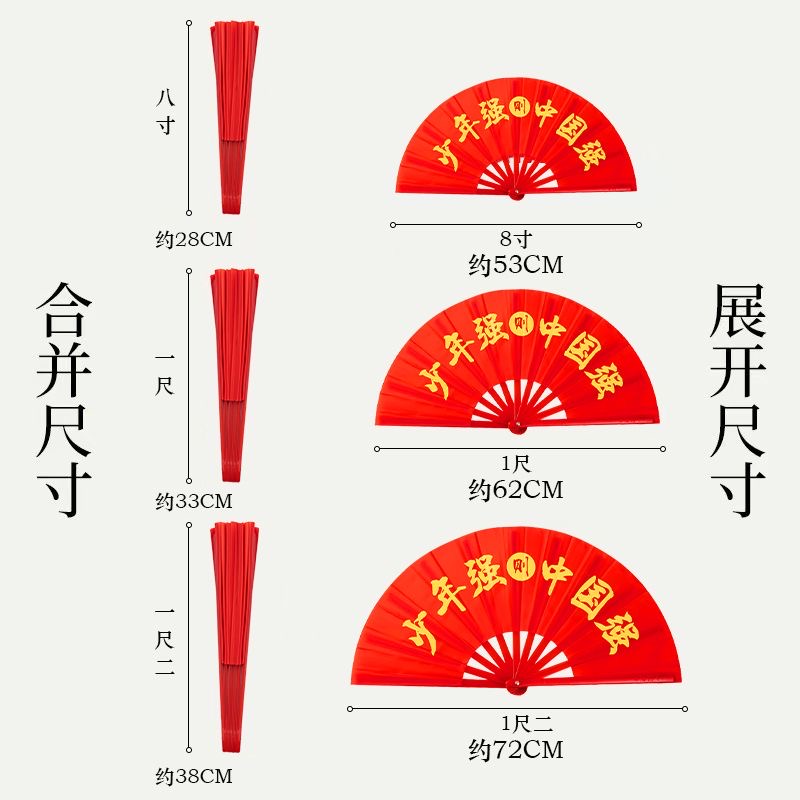 太极功夫扇武术正品 红色高档竹骨响扇儿童表演舞蹈扇双面功夫扇子