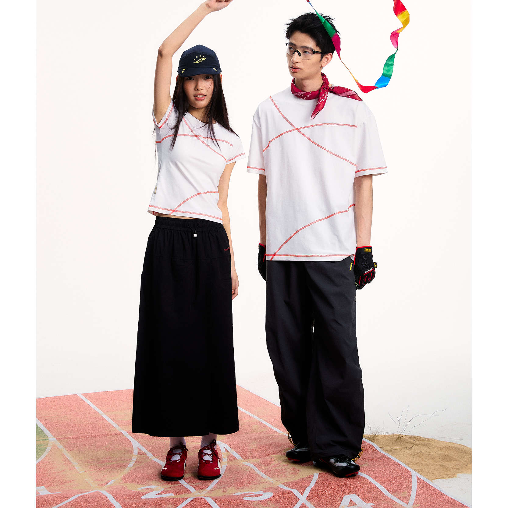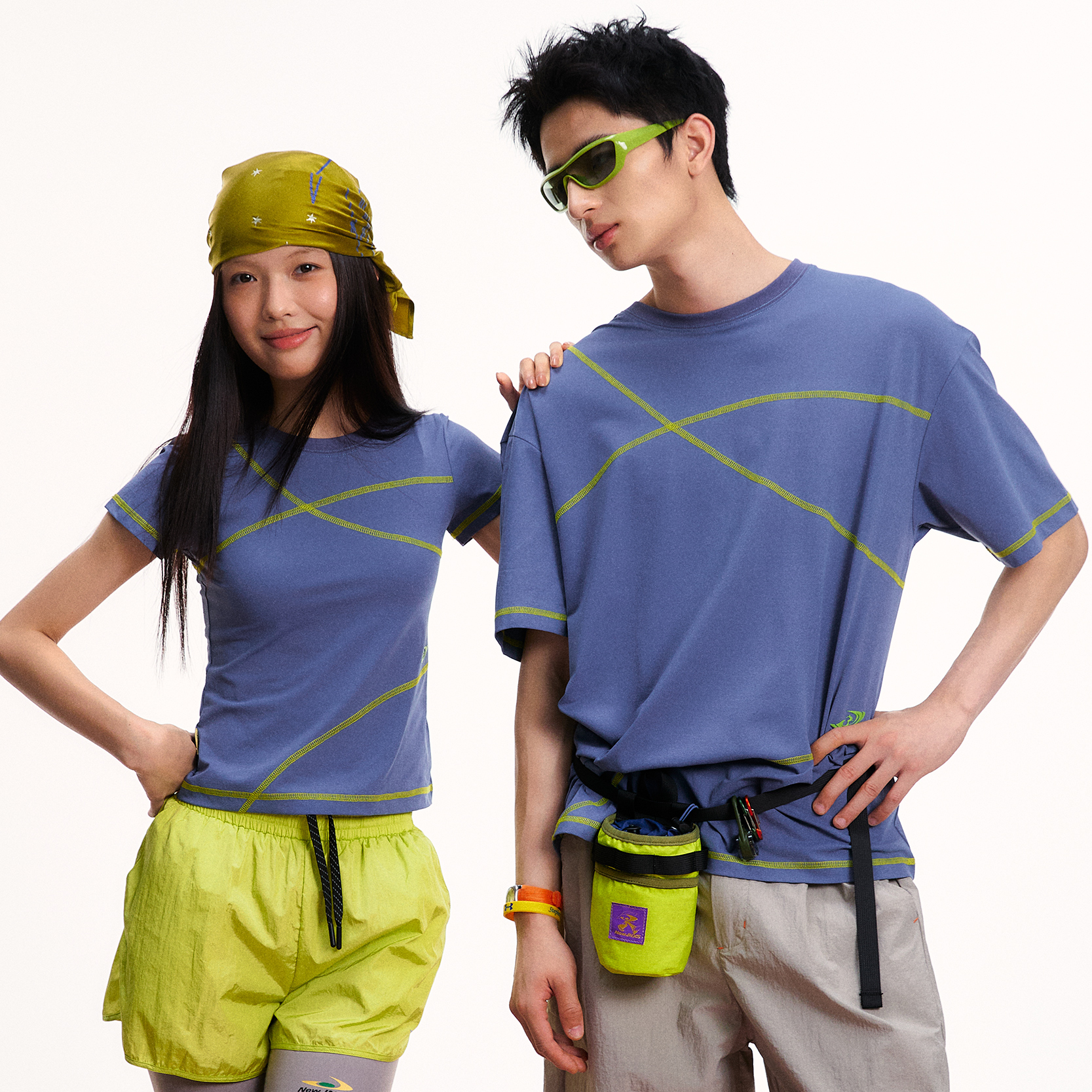 江南先生NewJNXS吸湿速干三针五线撞色印花情侣款 T恤夏 防晒短袖