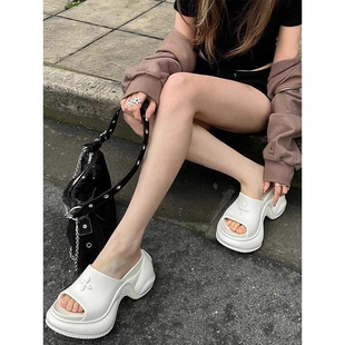松糕增高一字凉拖鞋 十字花9.5cm高跟超厚底拖鞋 女夏外穿2025新款