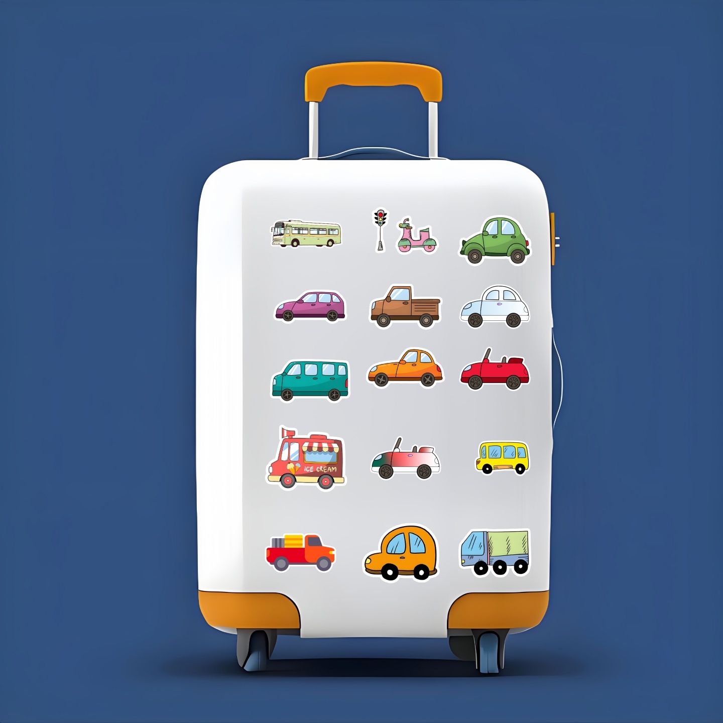 360张卡通汽车贴纸工程车交通工具救护车挖掘机搅拌车飞机创意装 饰笔记本电脑行李箱冰箱头盔防水贴画