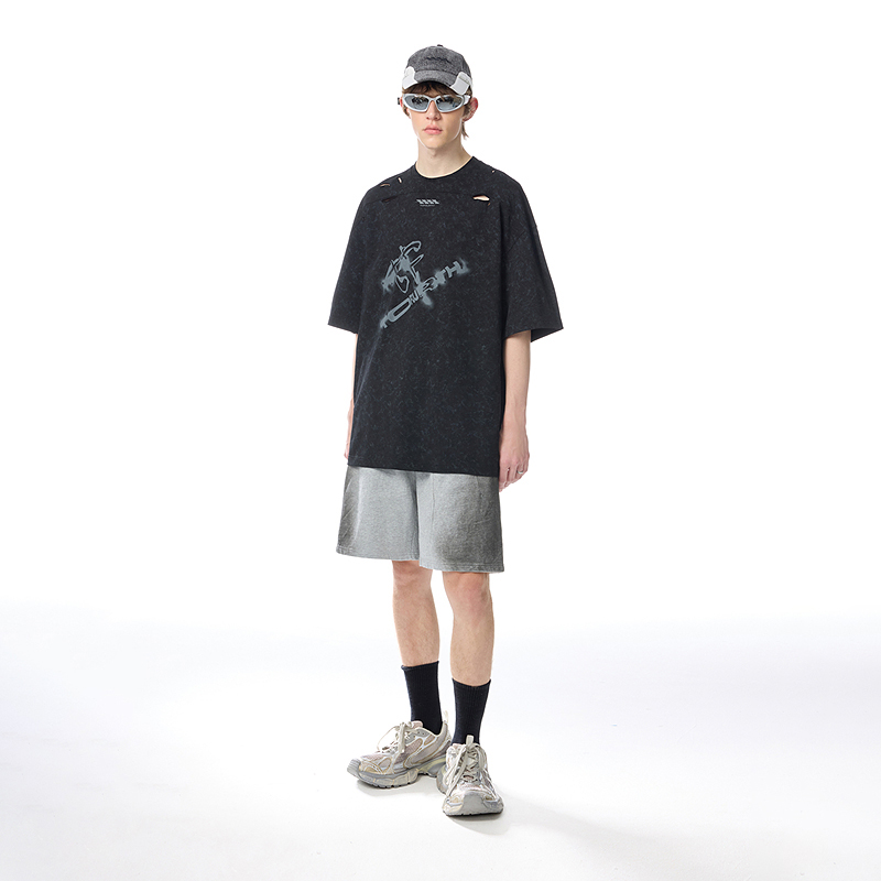 男女破洞宽松印花百搭短袖 2025夏装 T恤 商场同款 TOFOURTHT恤