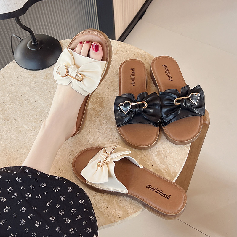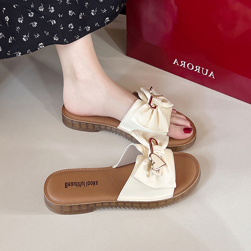 牛筋软底平底蝴蝶结沙滩海边一字拖孕妇 外穿2025新款 凉拖鞋 女夏季