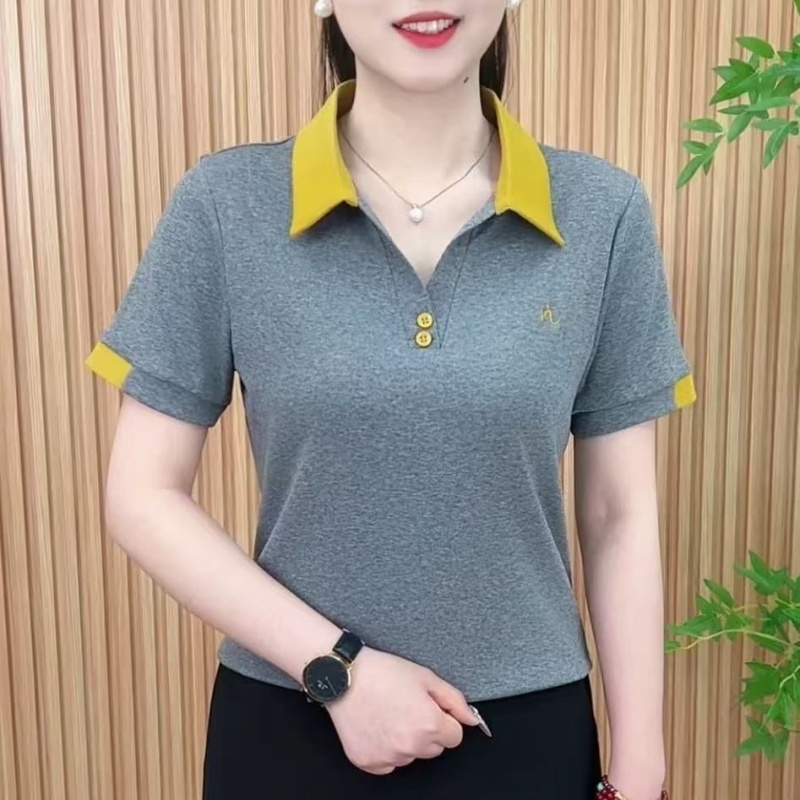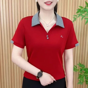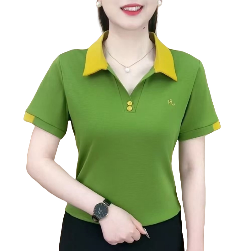 T恤女修身 夏季 洋气拼接撞色Polo领短袖 时尚 显瘦气质减龄上衣 新款