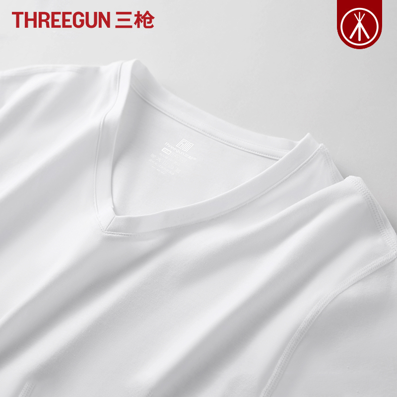 匠心 高支新疆长绒棉V领T恤轻奢级丝柔舒适打底衫 三枪商务男士 短袖