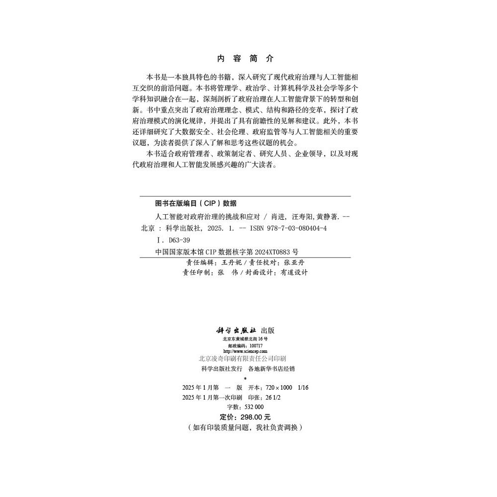 肖进 汪寿阳 社 人工智能对理 9787030804044 科学出版 挑战和应对;298 著 官方正版 黄静