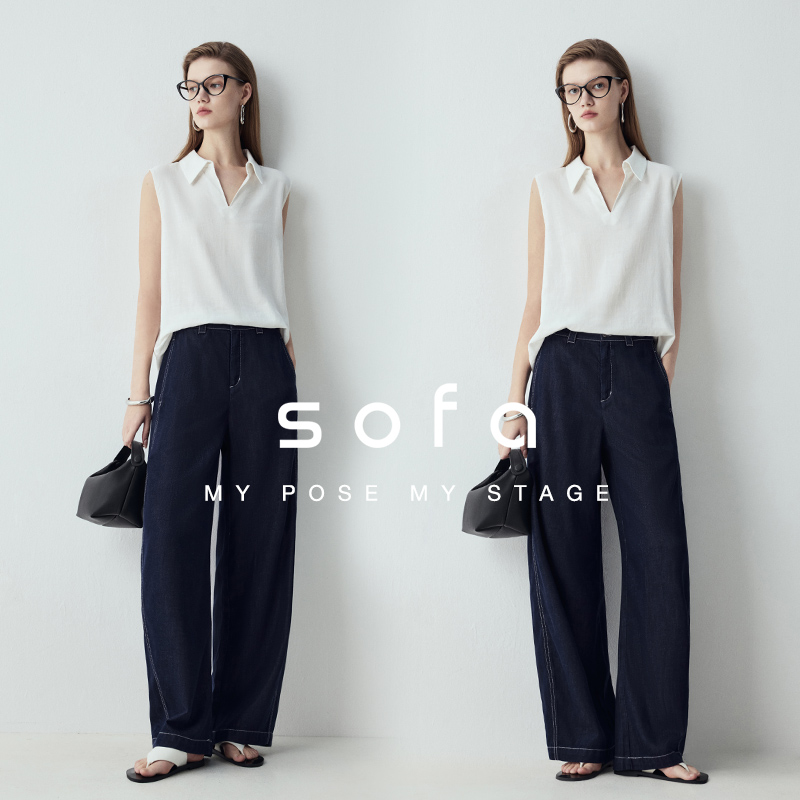 含棉时髦腰带显瘦长裤 Vero 新款 25秋季 老钱风325332075 Moda牛仔裤