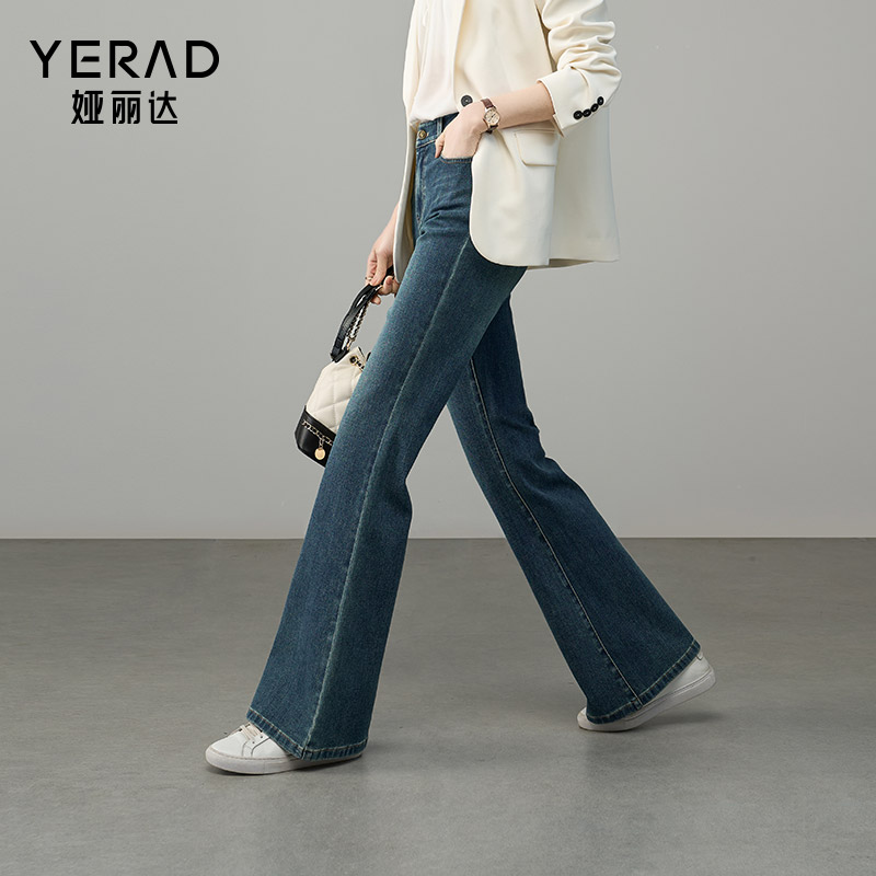 女2025秋新款 马蹄裤 喇叭裤 时髦修身 白色女裤 娅丽达弹力微喇牛仔裤