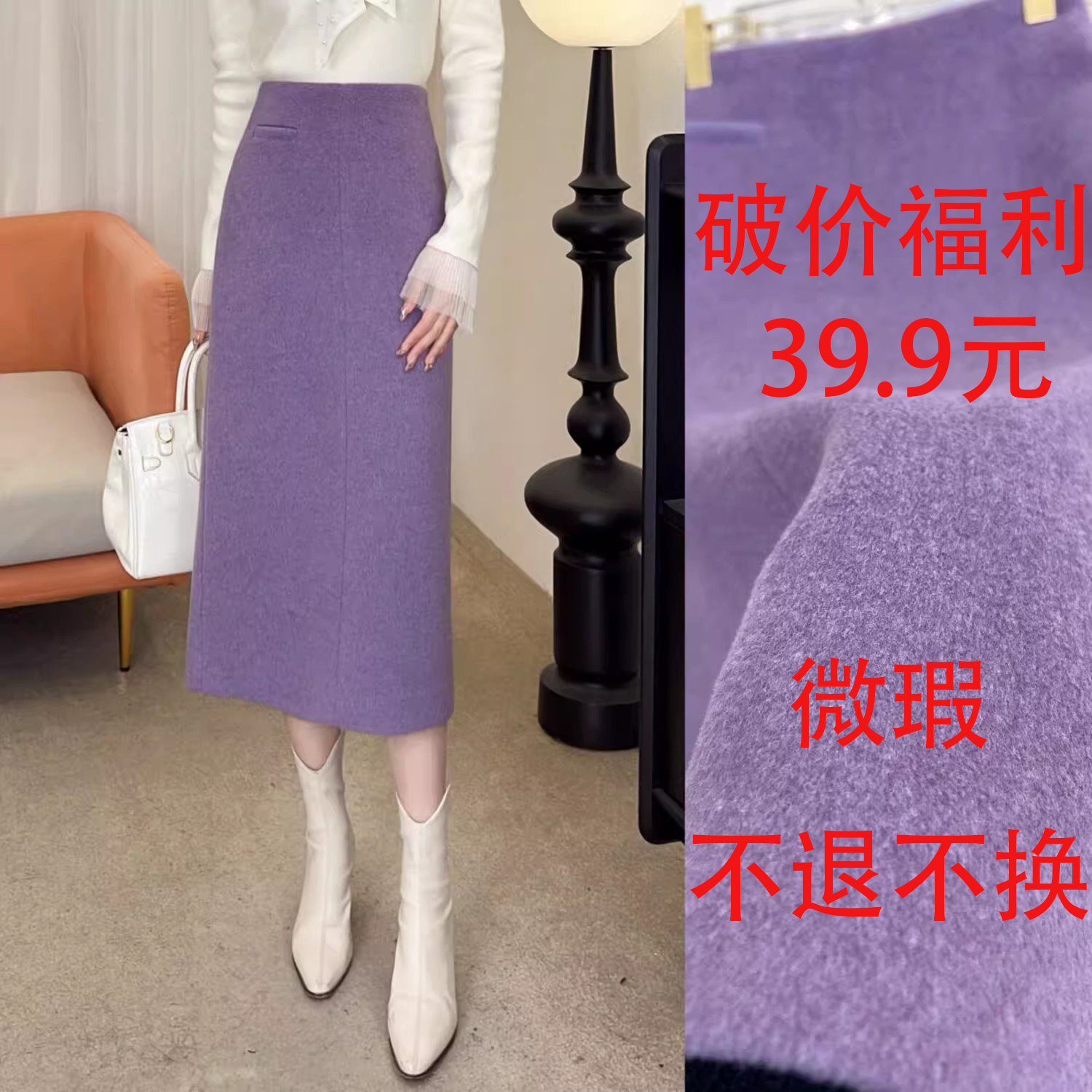 毛呢直筒半身裙女冬季 微瑕破价福利 高腰气质包臀裙 不退换