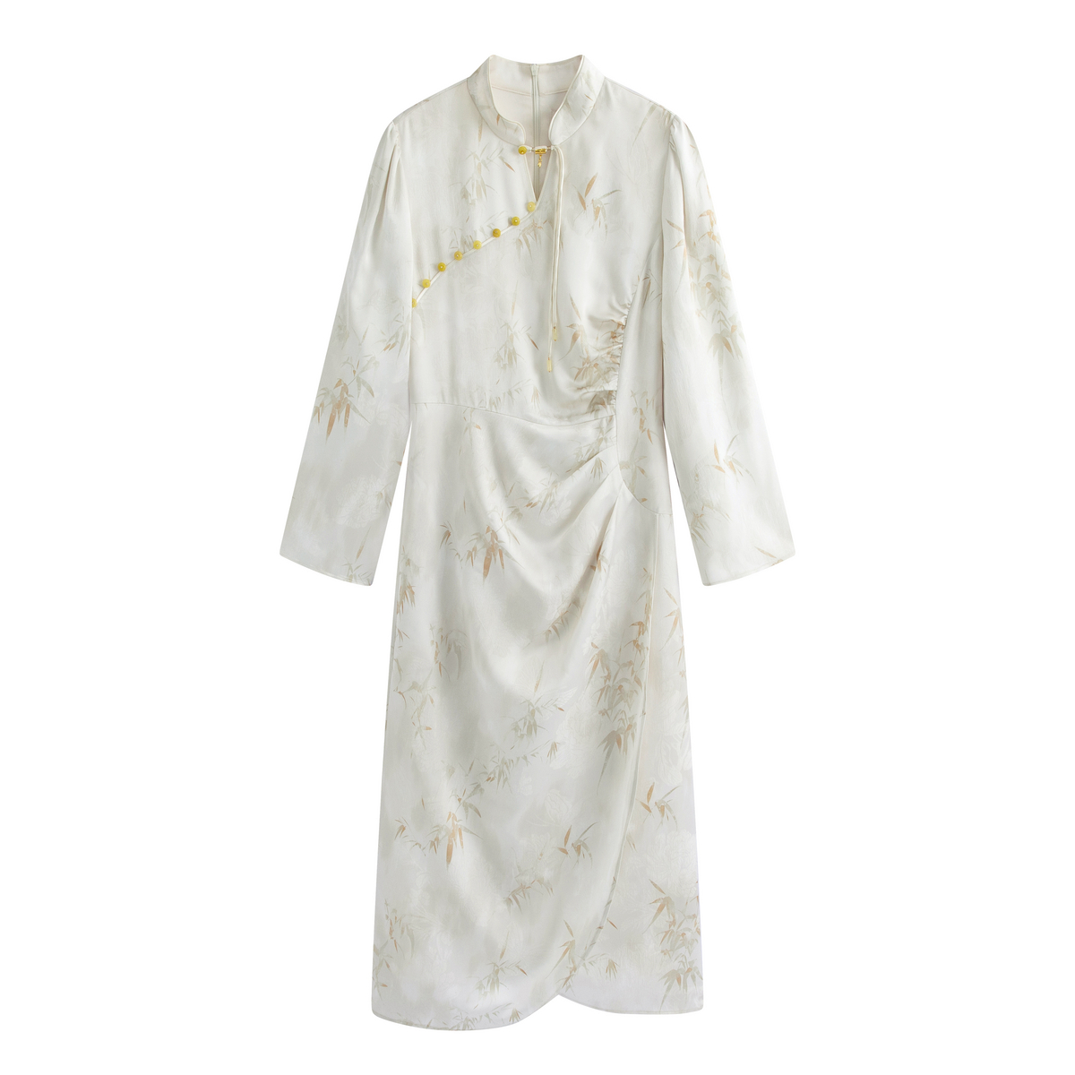 栀花清梦 杏色立领盘扣旗袍连衣裙开衫 早秋季 新中式 女 新款 乔拉