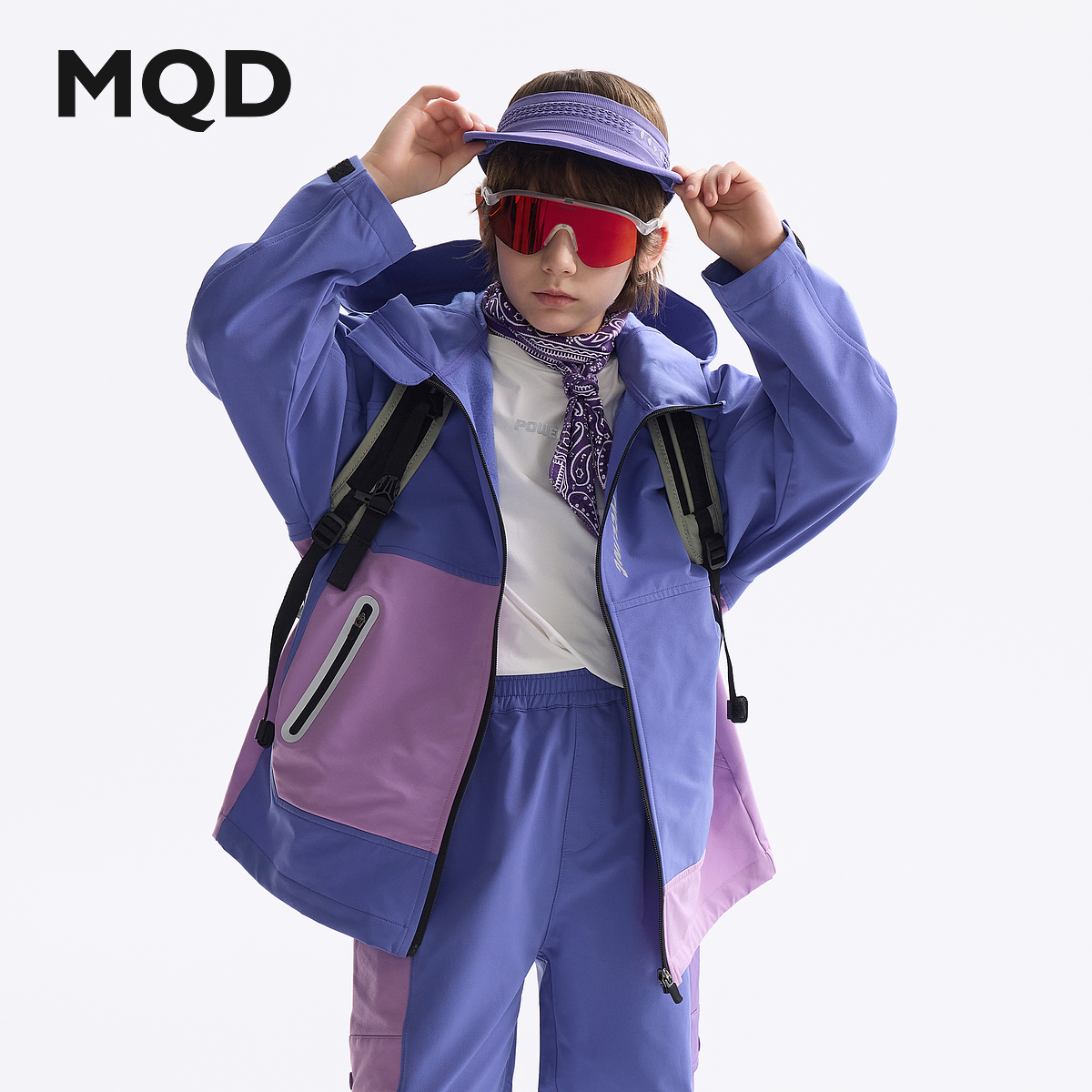 MQD童装 三防 女童外套25春装 新款 风衣 儿童连帽撞色时尚 免50