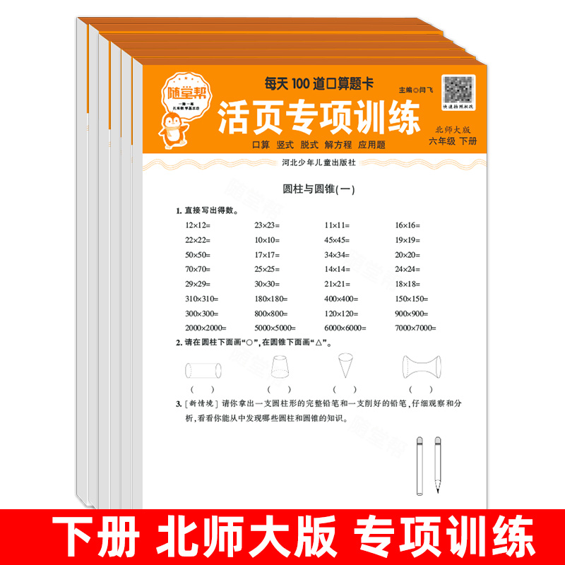 活页口算题卡上册下册一二三四五六年级口算天天练人教苏教北师大每天100道数学课本同步练习册竖式 解方程应用题小学生计算题 脱式