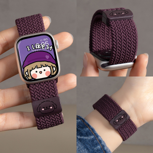 匠戴适用苹果S10手表iwatch11表带applewatch10磁吸S9新年新款 S8编织8运动7女夏天3高级尼龙S6创意SE酒红腕带