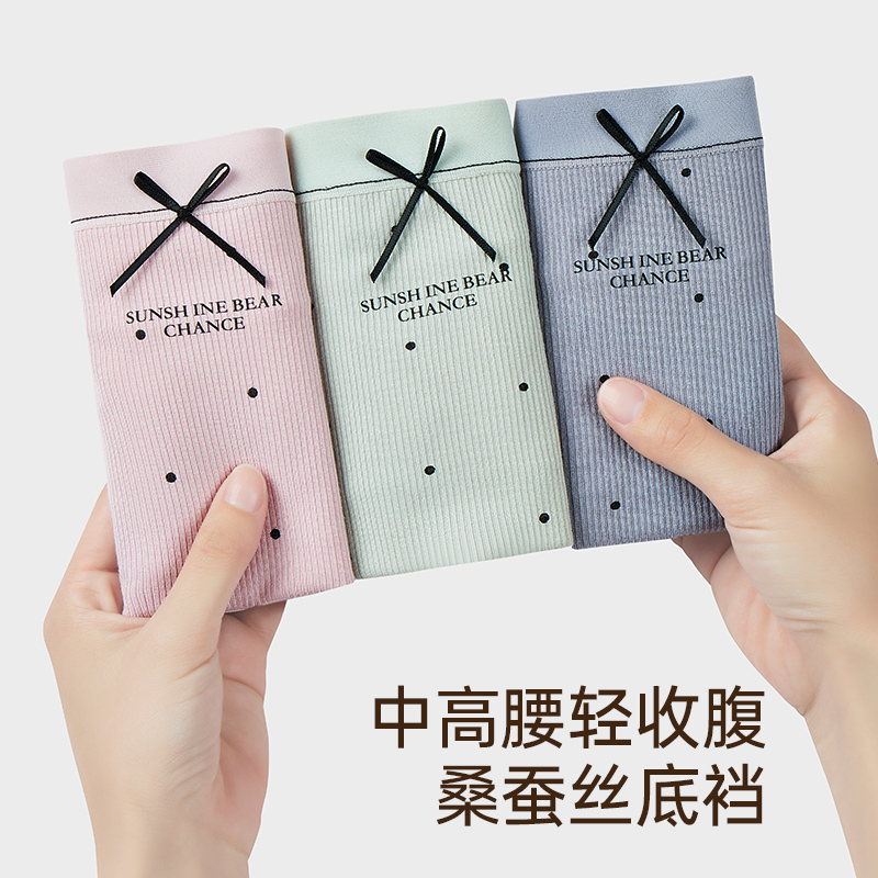 新款 桑蚕丝底裆中腰收腹波点印花高弹透气女内裤 女大码 玛伦萨内裤