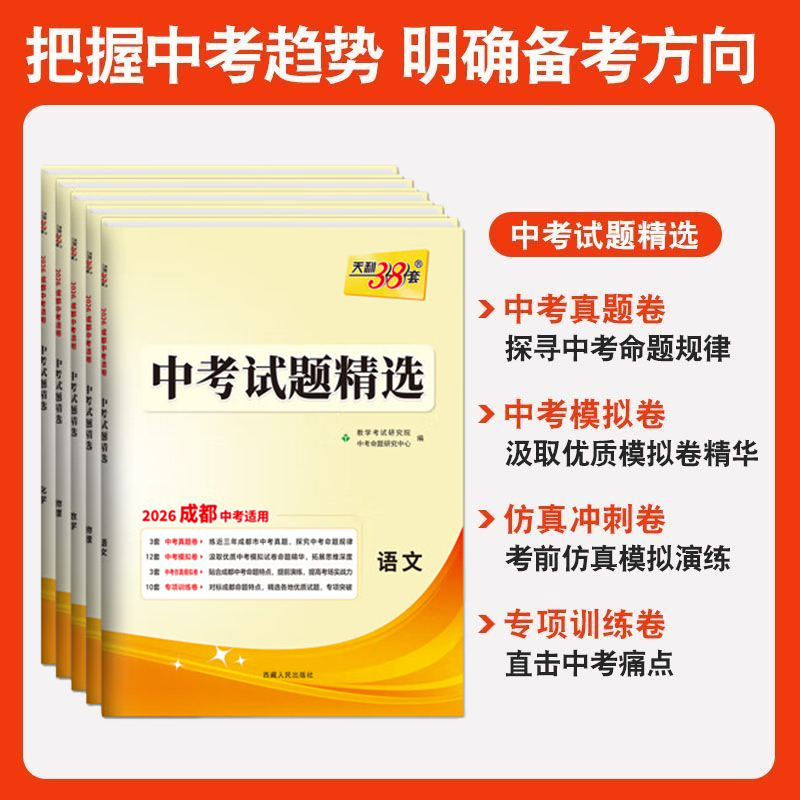 2026版 天利38套成都中考试题精选语文数学英语物理化学真题试卷全套真题卷模拟卷仿真测试中考押题卷初中初三九年级复习资料书