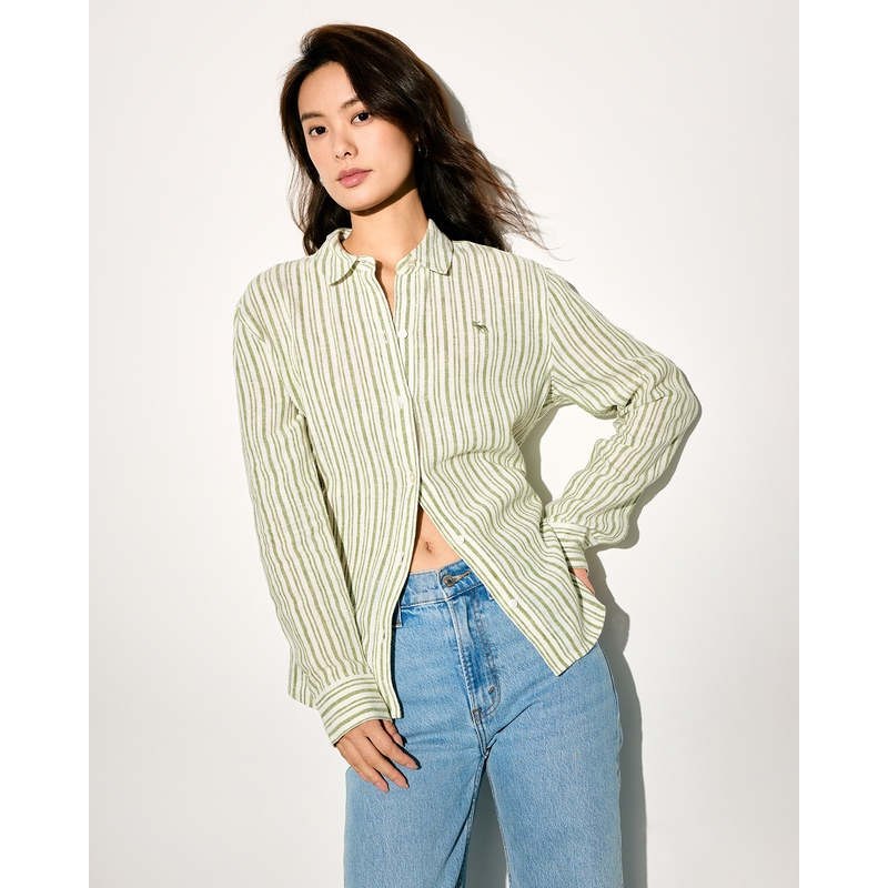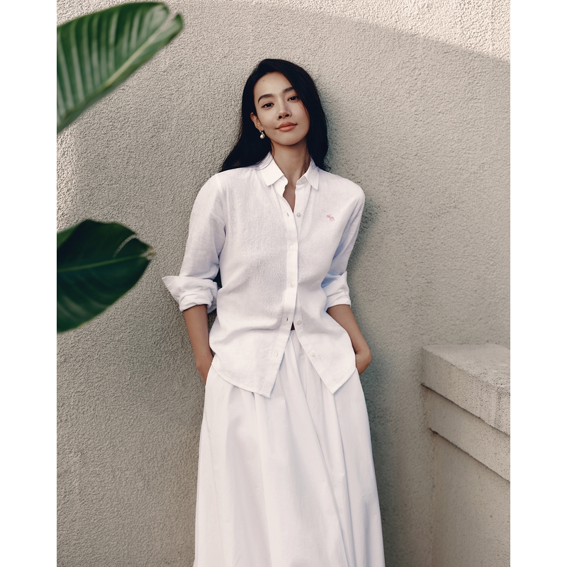 140 AF经典 衬衫 25春夏亚麻混纺通勤长袖 5081 小麋鹿图案女装
