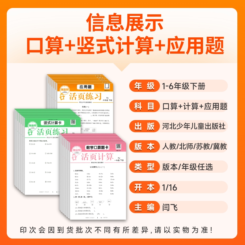 2025随堂帮活页口算计算应用题卡练习题上册下册人教版 计算强化训练一二三四五六年级计算能手北师冀教苏教练习 小学生数学口算竖式