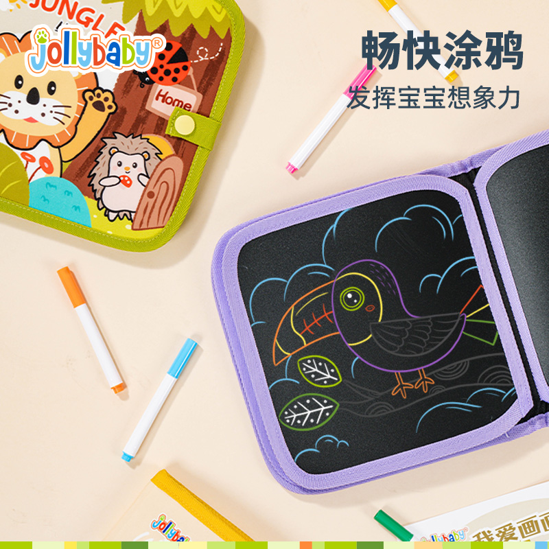 3岁宝宝画图 jollybaby儿童涂鸦描绘本画画反复涂色可擦0 自营