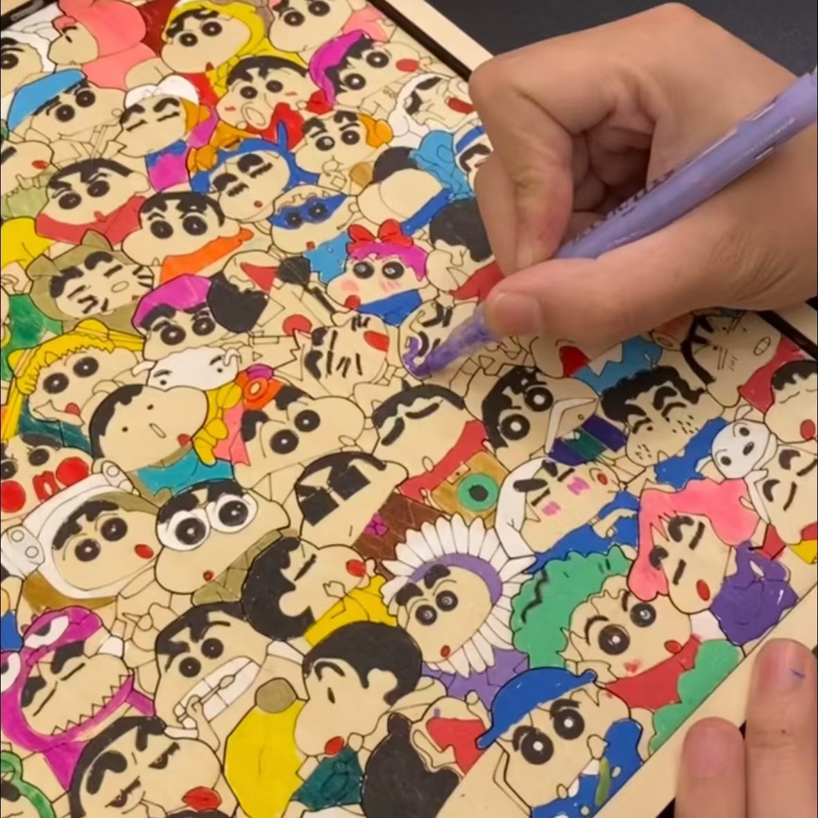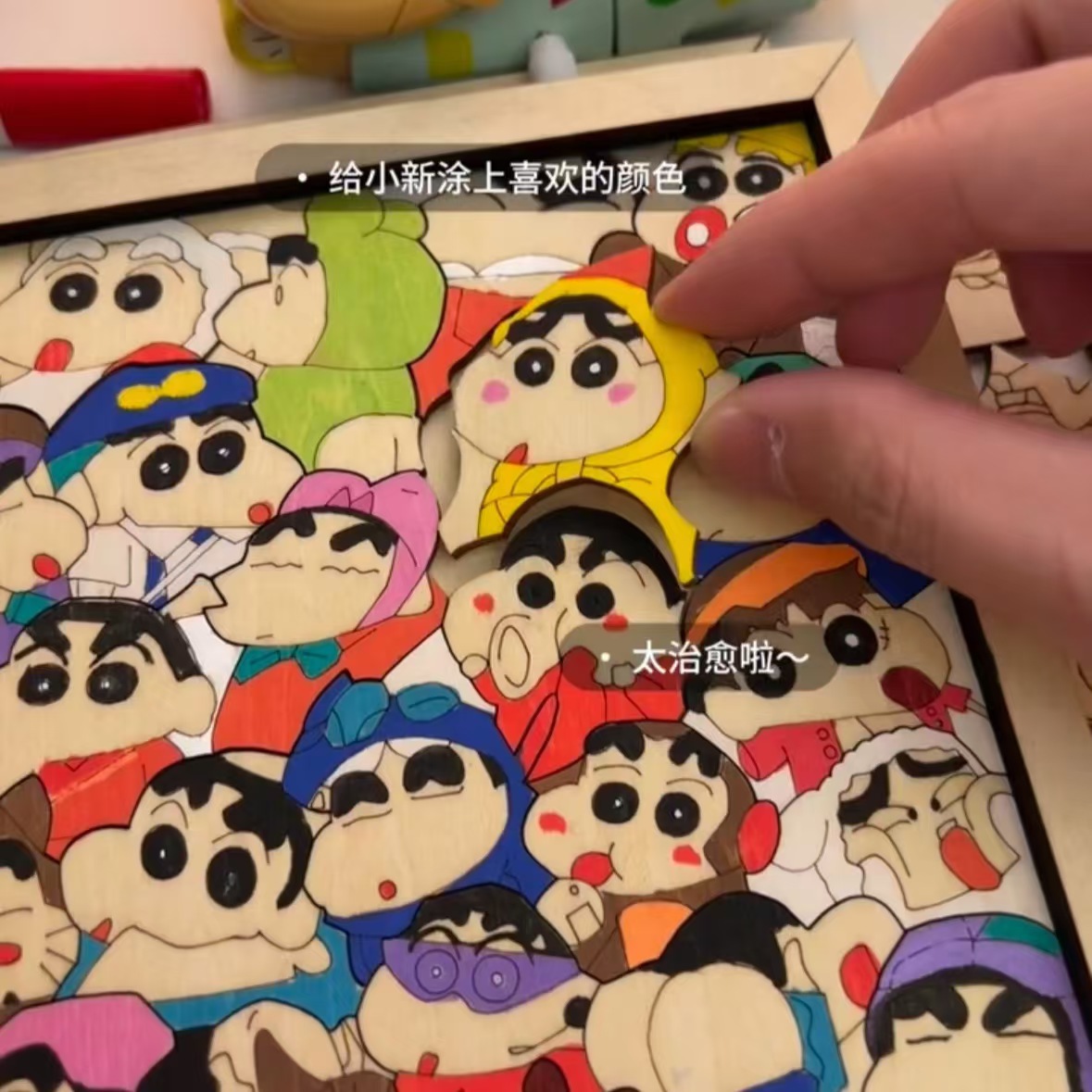 木制儿童益智玩具蜡笔小新木质异形拼图难度高男上色涂色礼物涂鸦