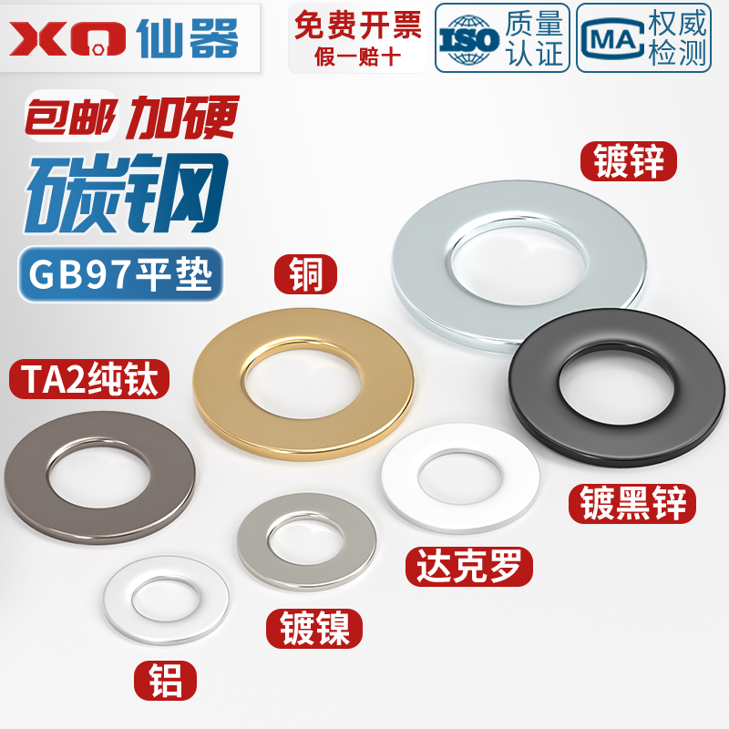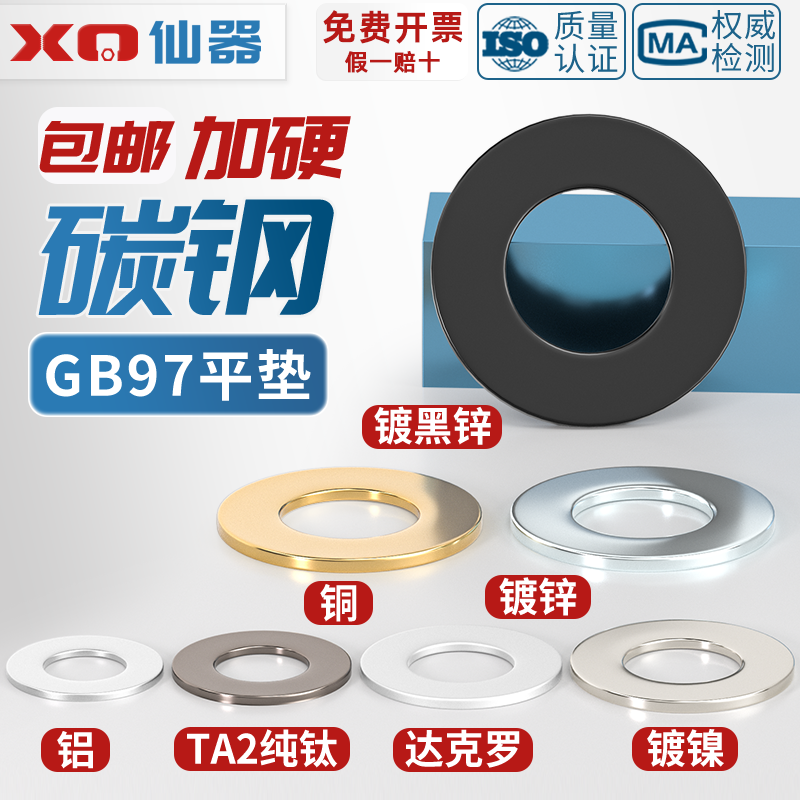 国标GB97 M45 8.8级黑色镀镍平垫片平垫圈加大加厚圆形介子M2M3M4