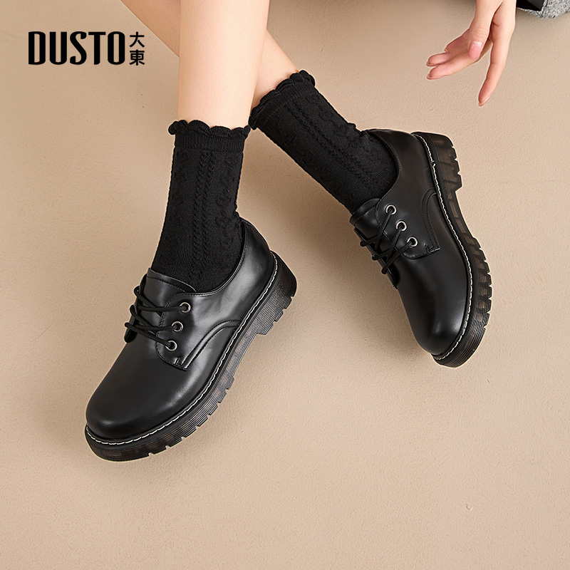 新款 2025秋季 粗跟中跟系带圆头Q0148 休闲舒适女鞋 大东乐福鞋