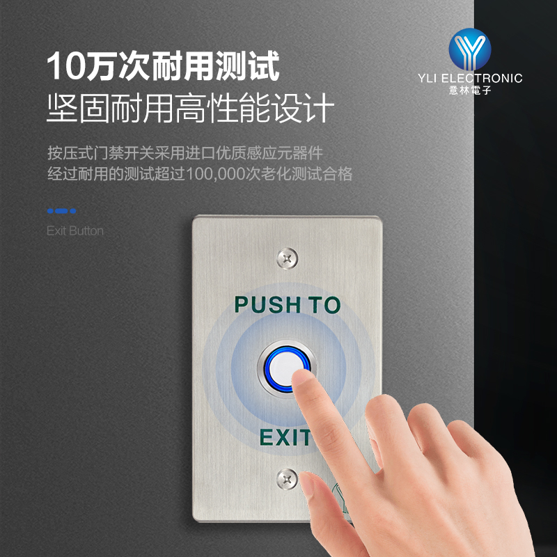 YLI 814门禁系统专用304不锈钢夜光门禁开关出门按钮 意林电子PBK