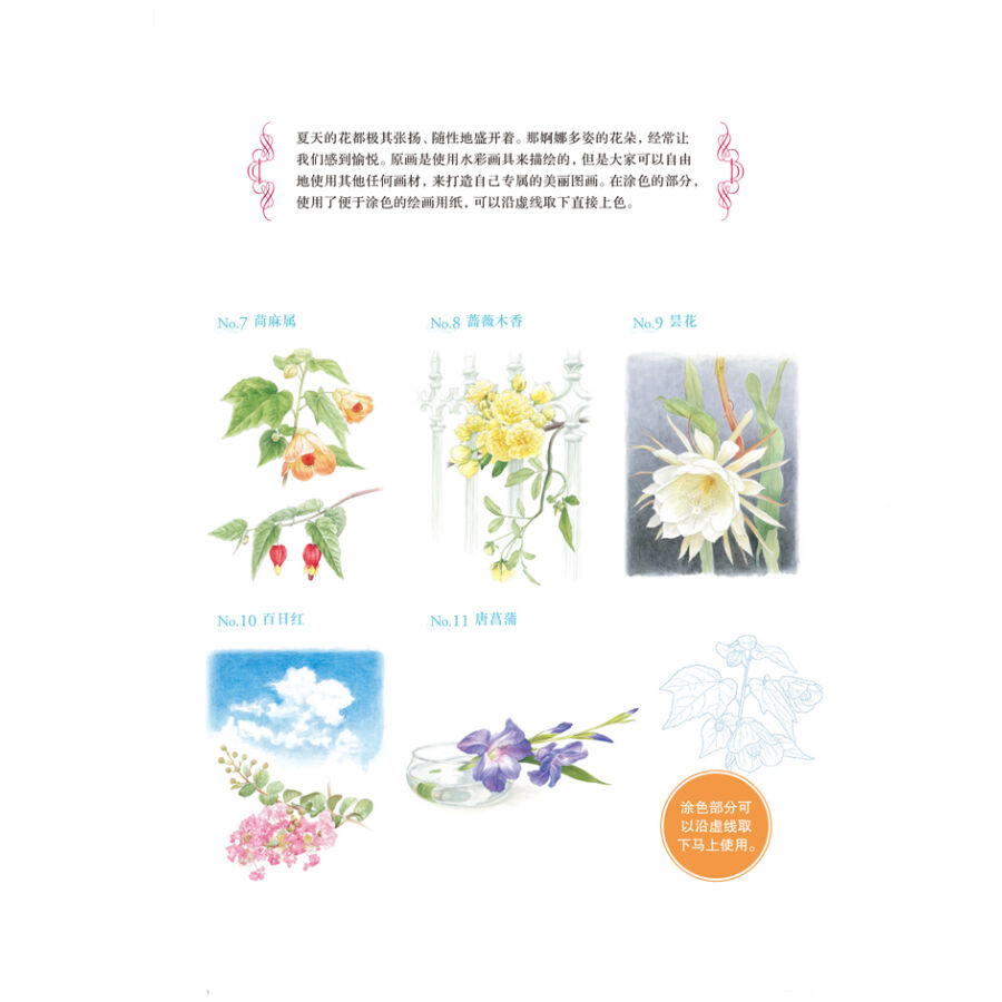 大人 内附精美彩色原稿及涂绘步骤讲解 涂绘02 涂绘丛书 适合绘画初学者快速上手 日本 夏日花绘