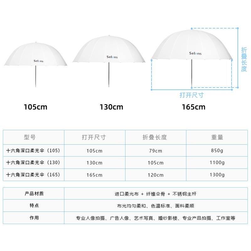 130cm 摄影伞反射柔光抛物线伞拍照补光人像摄影棚闪光灯反光伞105cm 摄影影棚附件 165CM深口柔光伞 Selens