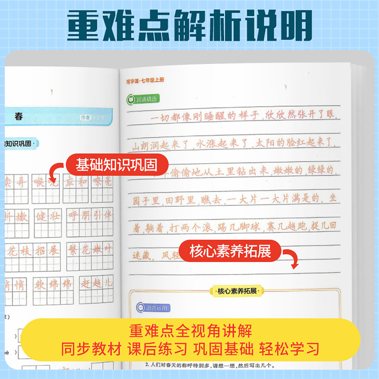 语文同步写字初一二三钢笔硬笔正楷书法练习册九上同步练习 七年级八年级上册新教材配套 人教版 华夏万卷初中生语文写字课字帖